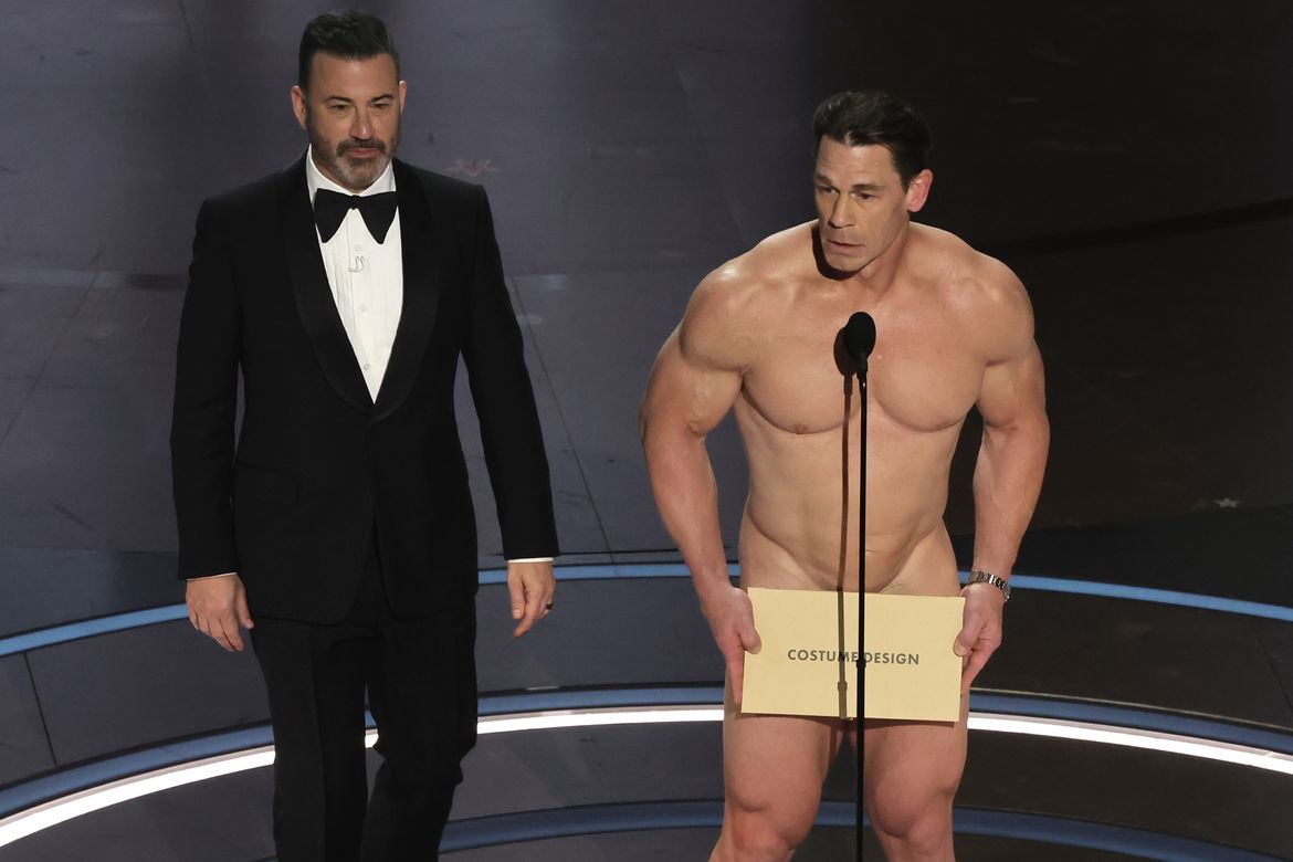 John Cena u shfaq gati lakuriq në skenën e “Oscars 2024”, duke kujtuar një nga momentet më të çmendura në historinë e Akademisë së Filmit kur një burrë lakuriq vrapoi në skenë në çm imet “Oscars 1974”.