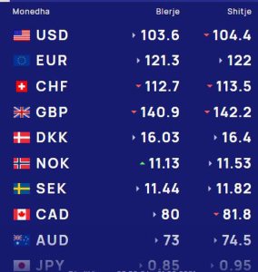 Më poshtë do të gjeni kursin e këmbimit valuator të përditësuar: