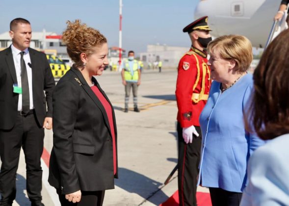 Kancelarja e Republikës Federale të Gjermanisë, Angela Merkel mbërriti pak minuta më parë në Aeroportin Ndërkombëtar të Tiranës, ku u prit nga Ministrja për Evropën dhe Punët e Jashtme, Olta Xhaçka. “Nder dhe kënaqësi t’i uroja mirëseardhjen Kancelares Gjermane, Angela Merkel, e cila mbërriti në Tiranë për takime të rëndësishme me Kryeministrin Edi Rama dhe liderët e rajonit”, tha Xhaçka, ndërsa postoi foto nga pritja në aeroport.