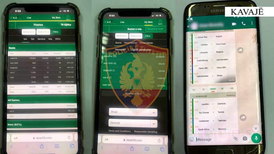 Organizonin prej rreth 3 muajsh, në lokalin ku punonin, në Golem, vënien e basteve sportive nëpërmjet celularëve, arrestohet në flagrancë 48-vjeçari dhe procedohet në gjendje të lirë, për shkak të moshës, një 17-vjeçar.