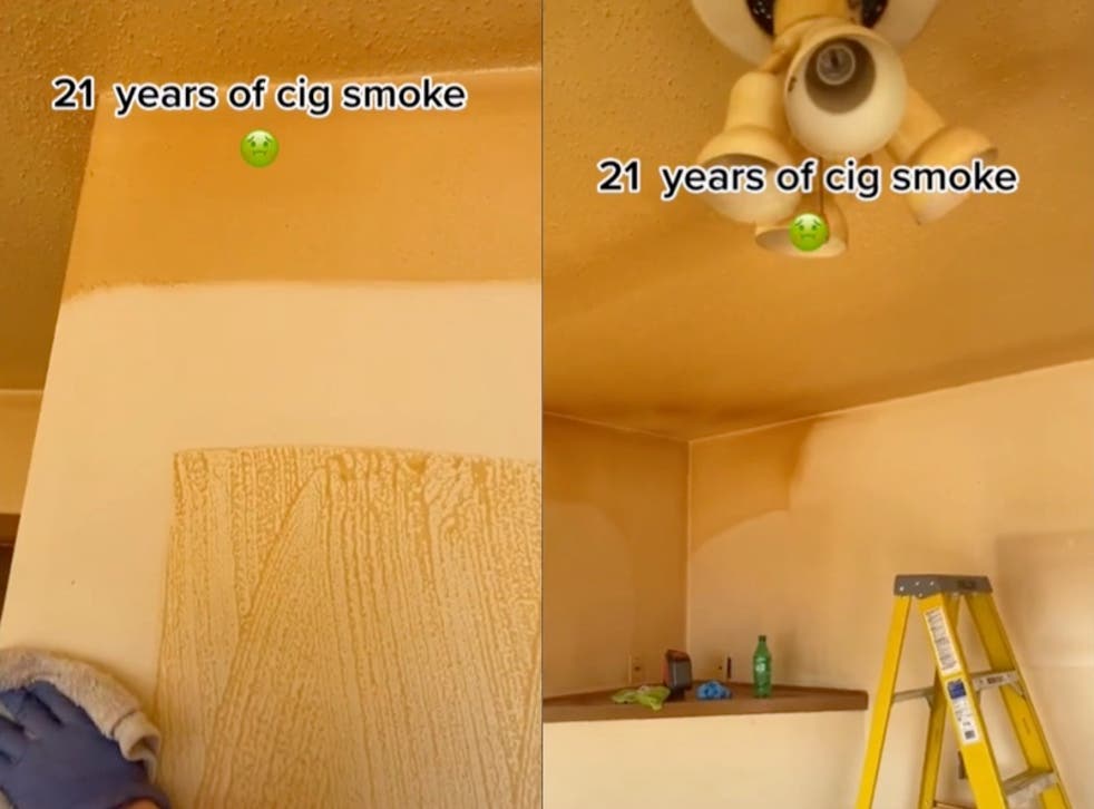 Një zonjë pastruese profesionale vendosi një video në TikTok dhe tregoi se si duket pastrimi i një apartamenti të tymosur për 21 vjet. Pamjet tregojnë atë duke hequr depozitat e portokallit që ishin grumbulluar nga depozitimi afatgjatë i tymit nga muret, dhe ai gjithashtu tregon dyshemenë në të cilën mbetën vendet më të ndritshme – ato ku qëndronin mobiljet.