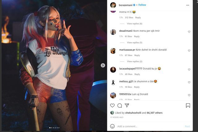 Përshkrimi i fotos që Bora kishte postuar ishte: “Monstra e vogël e babushit”. Ritvana, një nga vajzat e Përputhen e ka korrigjuar duke i komentuar: “Monstra e vogël e Donaldit”-koment i cili kishte marrë shumë pëlqime por më vonë është fshirë për arsye që nuk dihen. Mbase Borës nuk i ka pëlqyer komenti i konkurrentes dhe i ka thënë ta fshijë.