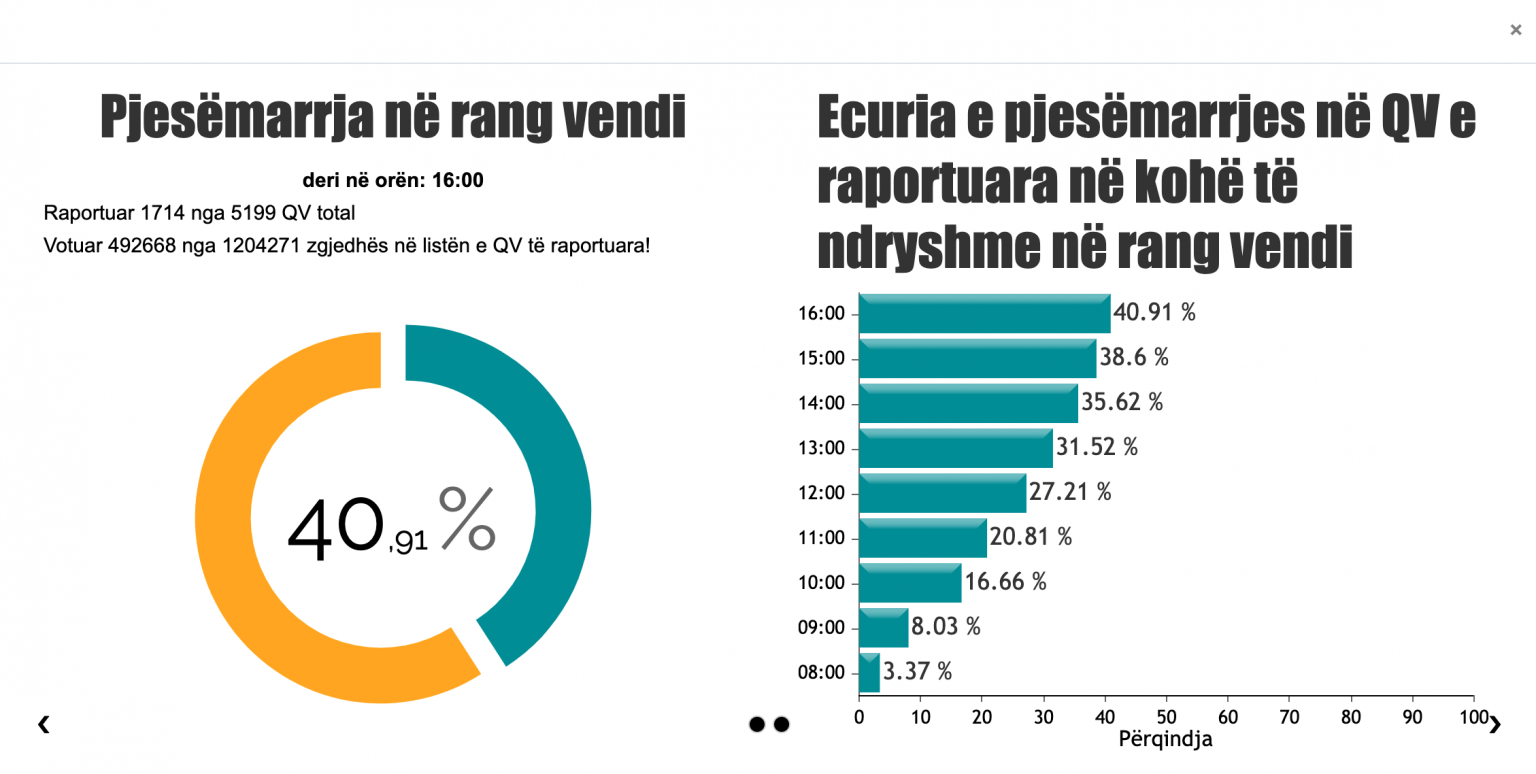 Ka arritur në 45.49%, numri i qytetarëve që kanë votuar në të gjithë vendin në 1640 Qendra Votimi nga 5199 që janë në total në rang kombëtar. Eshtë Tirana qyteti që kanë votuar më shumë qytetarë të cilët kanë të drejtë vote madje zyrtarisht, me numrat e deritanishëm, kryeqyteti kalon edhe numrin e votuesve në zgjedhjet parlamentare të vitit 2017 ku ishte 49.91% pjesëmarrja ndërsa tani ka arritur në 51.58%.