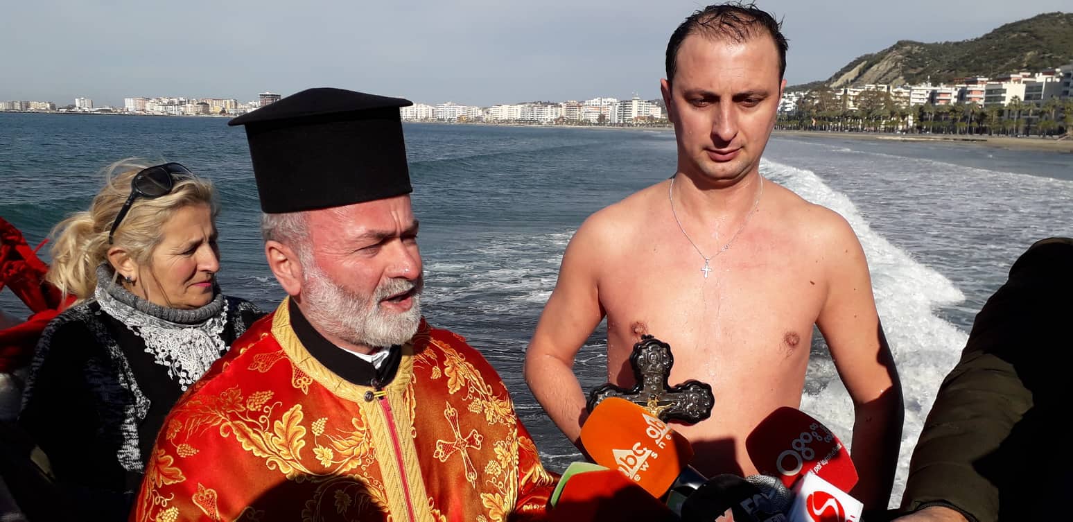 Kremtimi i 6 janarit ne Vlorë,epifania,festa fetare e simbolizuar me hedhjen e kryqit ne det, ne Vlorë, tre persona kanë sfiduar njëri-tjetrin në det për të kapur kryqin. Në një ditë ku temperaturat kanë qenë mjaftueshem të ulta ,rituali i ditës së epifanisë që përfundon me hedhjen e kryqit të shenjtë ne det,eshte ndjekur nga dhjetra persona dhe besimtare. Altin Qirjo, i ardhur me pushime nga Gjermania, ka qenë personi i cili ka arritur të kapë kryqin në ujrat e ftohta të detit, ndërsa së bashku me të, janë hedhur edhe Klodian Shahini e Xhoni Shollaj.