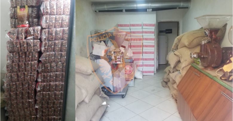 Gjithashtu, shërbimet e Policisë, gjatë kontrollit të ushtruar në magazinën e shtetasit Q.B., gjetën dhe sekuestruan 2 tonë e 280 kilogramë kafe e pa përpunuar (kokërr) dhe 1 tonë e 116 kilogramë kafe, të ndara në paketime me mbishkrime të ndryshme.