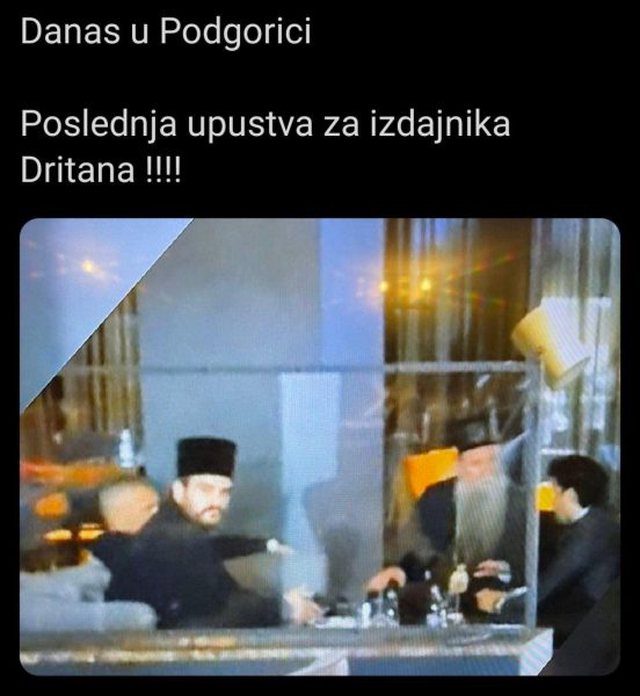 Dritan Abazoviçi e ka përkrahur shefin e tij proserb në qasjen ndaj protestave të qytetarëve malazezë kundër shugurimit të kreut të Kishës Ortodokse Serbe në Cetinje. Derisa malazezët që kundërshtojnë ndikimin serb dhe mbrojnë identitetin e tyre kombëtar protestonin, brenda Manastirit në Cetinje po mbahej ceremonia ku, ndër të tjera, po këndohej “kur ushtria të kthehet në Kosovë”. Para kësaj ceremonie, dolën pamjet ku Abazoviçi ishte takuar me krerët e Kishës Serbe, për t’u koordinuar.