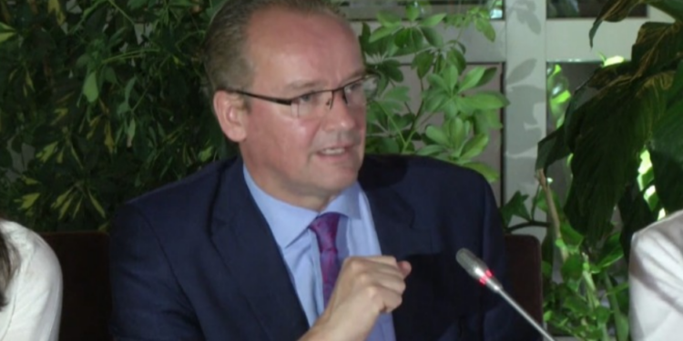 Deputeti gjerman Gunther Krichbaum në një konferencë për mediat me gazetarët u ndal edhe te largimi i të rinjve dhe rruga e Shqipërisë në BE.