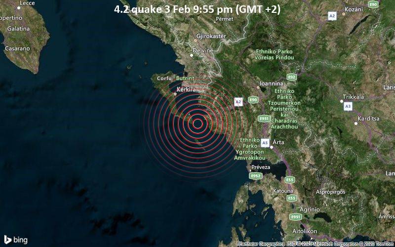 Një tërmet me një madhësi 4.2 të shkallës rihter ka goditur pak më parë Korfuzin. Epiqendra e tërmetit ishte në afërsi të Korfuzit, me një thellësi prej 19.5 km.