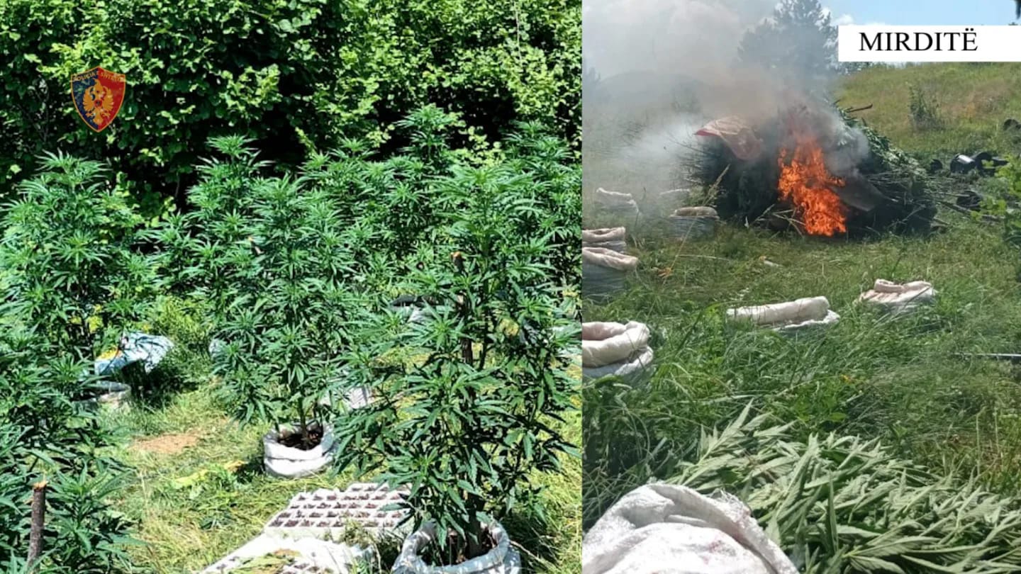 Asgjësohen nëpërmjet djegies në total 2918 bimë narkotike cannabis sativa që u gjetën të kultivuara në dy fshatra të rretheve Lezhë dhe Mirditë.
