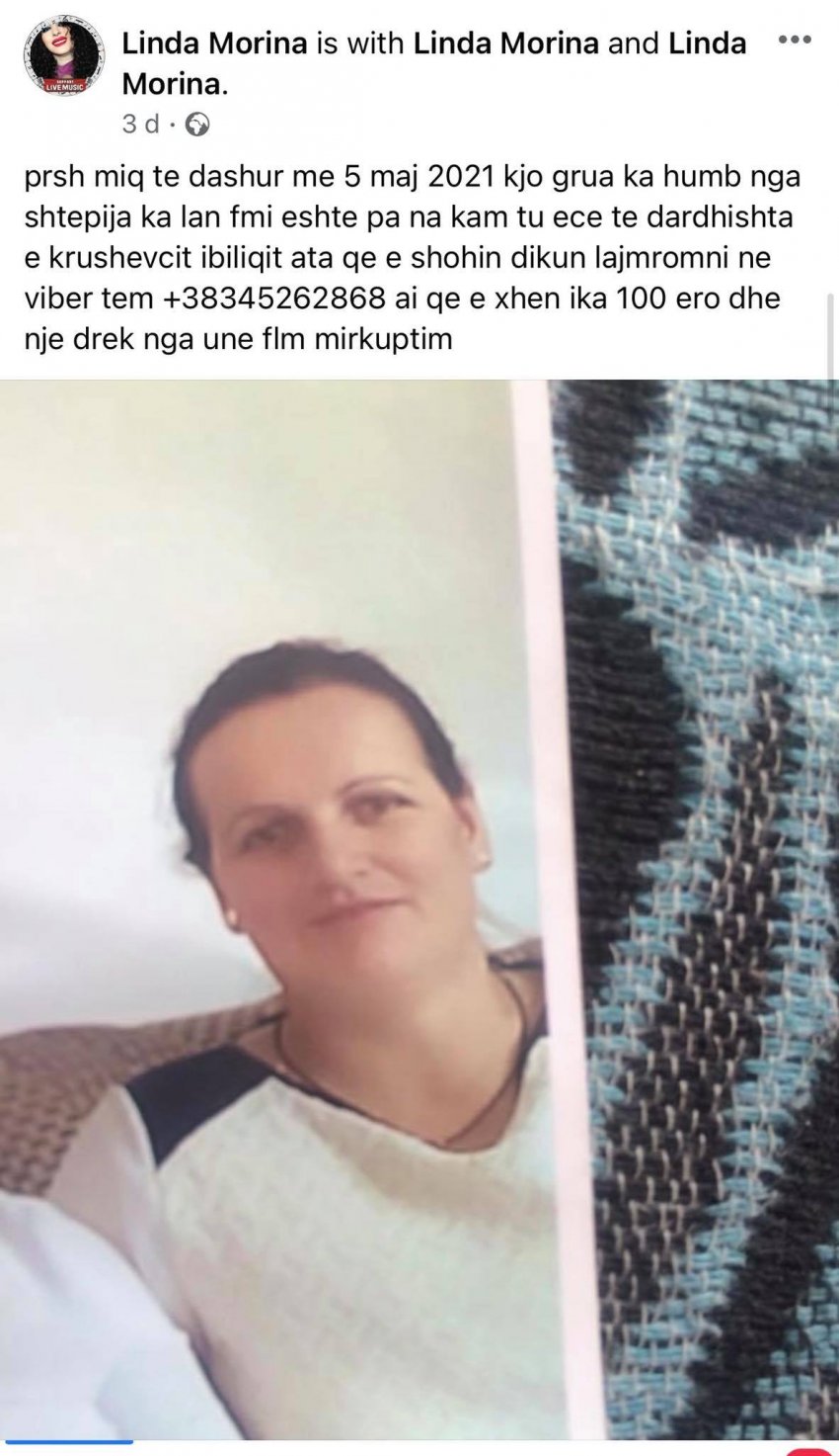 Senzacionini i saj u rrit me postimet në rrjete sociale. Ajo, së fundi ka treguar se i ka humbur një shoqe për të cilen thotë se nëse e gjen dikush, ajo do ta shpërblejë me 100 euro dhe një drekë.