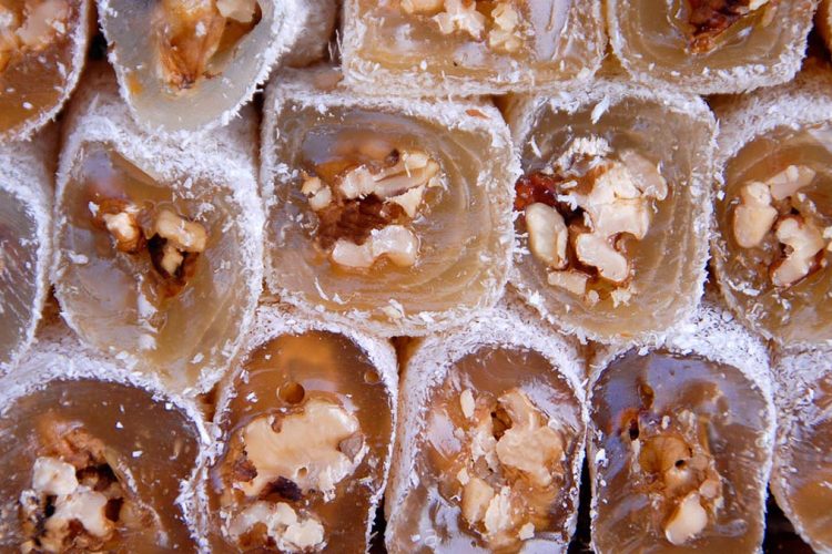 Marrim dhe e kthejmë përmbys në tavolinë ose në një tepsi tjetër dhe fillojmë e spërkatim përsëri me niseshte,sheqerin pluhur dhe arrën e kokosit. E lyejmë thiken me vaj dhe fillojmë të presim llokumet me madhësi sipas dëshirës.