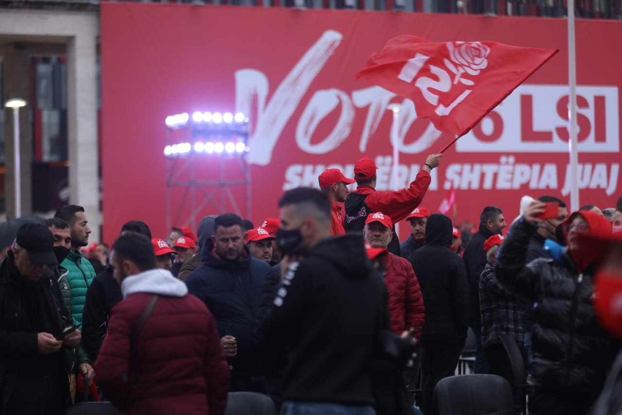 Dje mbasdite Sheshi “Nënë Tereza” u përskuq nga flamujt e LSI-së. Mijëra të rinj dhe të reja sfiduan edhe shiun dhe u mblodhën në mitingun përmbyllës të LSI-së në Tiranë për zgjedhjet parlamentare të 25 prillit.