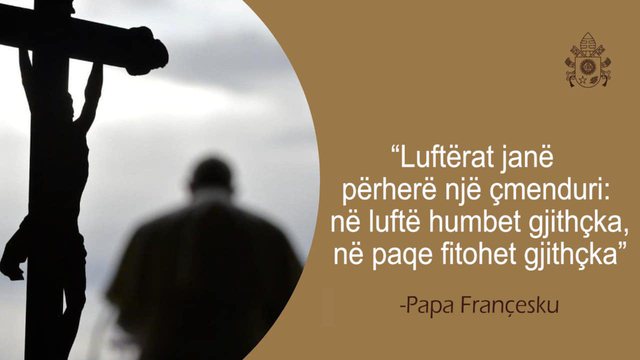 Kreu i qeverisë ka postuar një thënie të Papa Françeskut, ku nënvizon faktin se në luftë humbet gjithçka.