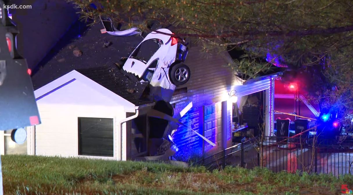 Një mrekulli ka ndodhur në Eureka Misuri, ku një makinë u përplas me një argjinaturë dhe për pasojë përfundoi në çatinë e një shtëpie. Sipas policisë, adoleshentët po ktheheshin nga festa e diplomimit në momentin e ngjarjes.