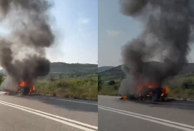 Shpërthen në flakë gjatë ecjes një mjet në aksin në Behaj të Mallakastrës, por fatmirësisht nuk ka të lënduar.