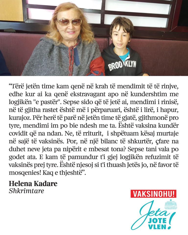 E kam të pamundur të gjej lohjikën e refuzimit të vaksinës prej tyre. Është njësoj si t’i thuash jo jetës, në favor të mosqenies! Kaq e thjeshtë”, thuhet në mesazhin e Kadaresë.