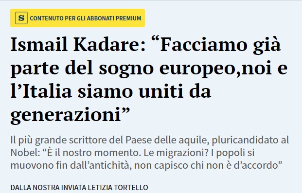 Kadare, në përgigje për median italiane “La Stampa” thotë se “nuk e kupton ku qëndron problemi me këtë marrëveshje, për sa kohë Shqipëria dhe Italia janë dy vende më të bashkuara se kurrë?”