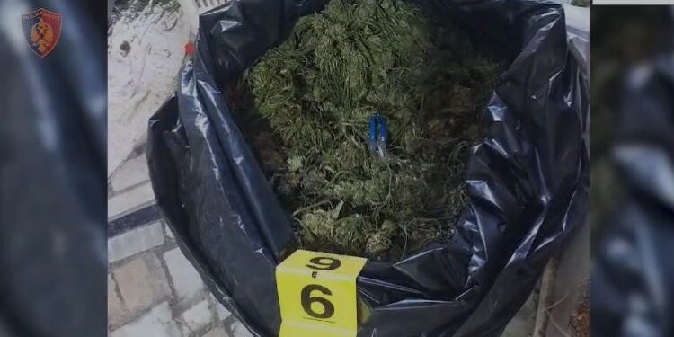 Policia ka sekuestruar mbi 50 kilogramë bimë narkotike në Dimal. Uniformat blu njoftojnë se lënda narkotike ishte në proces tharje, në oborrin e një banese që ishte përshtatur për kultivimin e kësaj bime.
