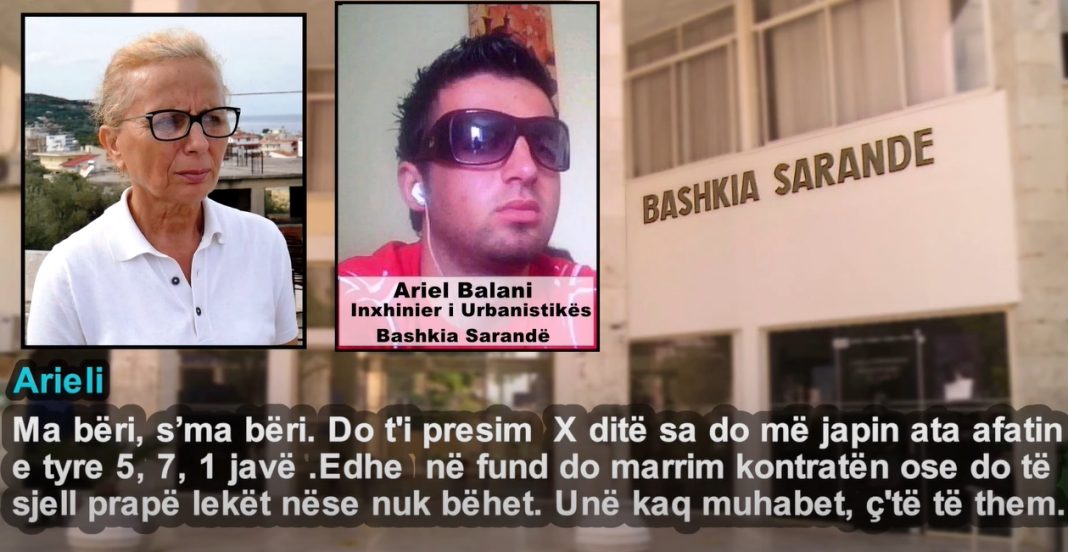 Një inxhinier i Urbanistikes në Bashkinë e Sarandës u ka kërkuar ryshfet, pasi do t’ua jepte “atyre në Tiranë”. Në audio-përgjim mes qytetarëve dhe inxhinierit, ky i fundit tregon pazaret sa marrin inspektorët e IKMT-së për të mos prishur ndërtime pa leje.