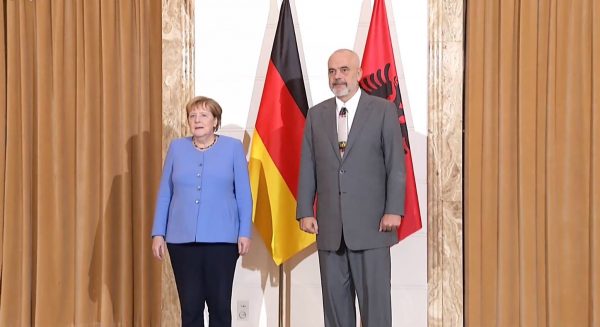 Kancelarja e Republikës Federale të Gjermanisë, Angela Merkel mbërriti në këto momente në Pallatin e Brigadave në Tiranë, ku po zhvillohet ceremonia e mikpritjes nga Kryeministri Edi Rama. Pas ekzekutimit të himneve kombëtare të dy vendeve nga banda frymore e Gardës së Republikës, Rama dhe Merkel parakaluan në tapetin e kuq para delegacioneve respektive.