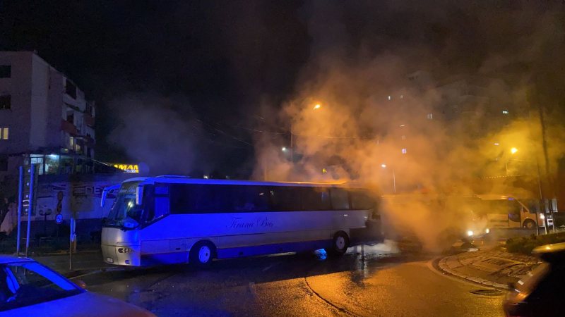 Një autobus i linjës Elbasan-Tiranë me pasagjerë ka marrë flakë mbrëmjen e sotme në afërsi të rreth rrotullimit në hyrje të qytetit të Elbasanit.