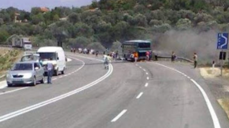 Njoftimi i policisë: Sot, në aksin rrugor Himarë-Sarandë, një autobus, me drejtues shtetasin A. L., 38 vjeç, në ecje, ka marr flakë, ku si pasojë ka vetëm dëme materiale. Nga hetimet paraprake rezulton se mjeti ka marrë flakë si pasojë e një defekti teknik. Vijon puna me grupin hetimor për sqarimin e plotë e rrethanave të ngjarjes.