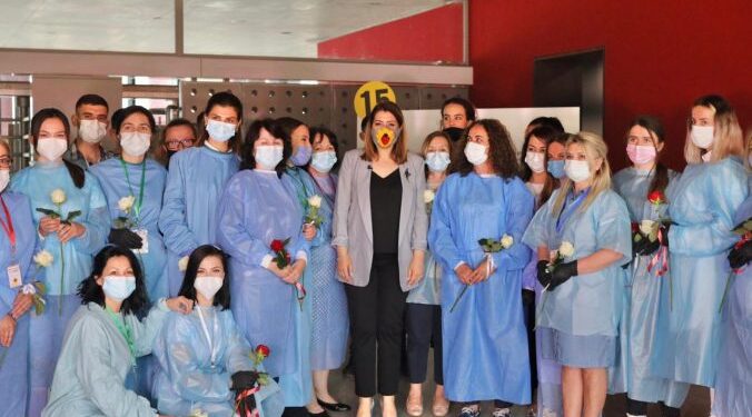 Ndaj unë sot kam kënaqësinë të jem këtu mes jush dhe nëpërmjet jush, dua të falenderoj të gjithë vaksinatorët tanë, kudo në sistemin tonë shëndetësor, në qendra shëndetësore, në pikat e vaksinimit të përqendruar për punën e madhe dhe gjithë sakrificën që ju keni bërë ditëve të javës, pasditeve, ditëve të shtuna, ditëve të diela, për të mundësuar një vaksinim me ritme të larta të popullatës”, tha Manastirliu.