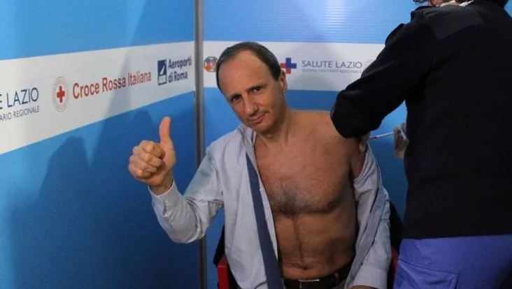 Mjeku 54-vjeçar Marco Buglione ka qenë i pari që ka marrë dozën e parë të vaksinës AstraZeneca në qendrën e re të vaksinave anticovid në aeroportin e Fiumicinos në Romë të Italisë.