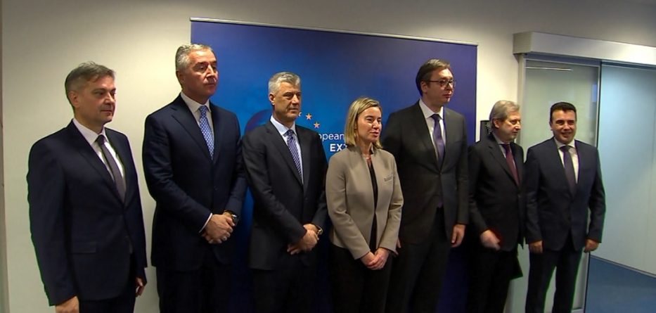 Teksa tensionet mes Kosovës dhe Serbisë sa vijnë e shtohen si pasojë e taksës 100% për importet serbe, Hashim Thaçi dhe Aleksandër Vuçiç u pritën në Bruksel nga përfaqësuesja e lartë për politikën e Jashtme në BE, Federica Mogherini, në një takim të përbashkët me liderët e Ballkanit Perëndimor, ku mungoi Kryeministri Rama.