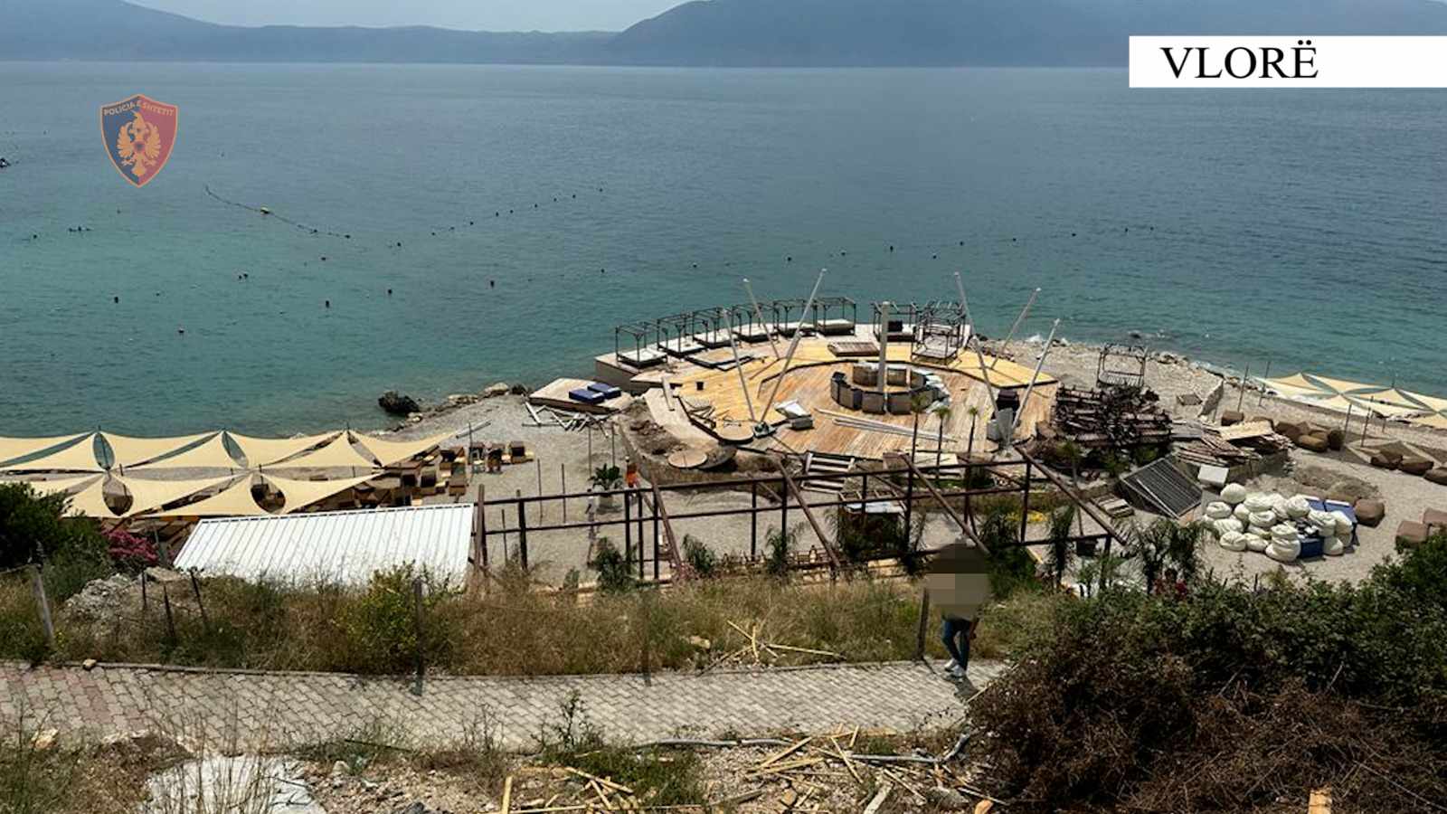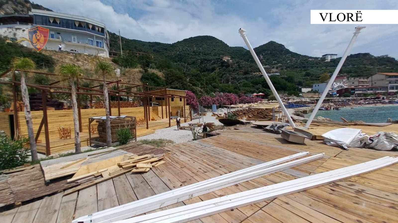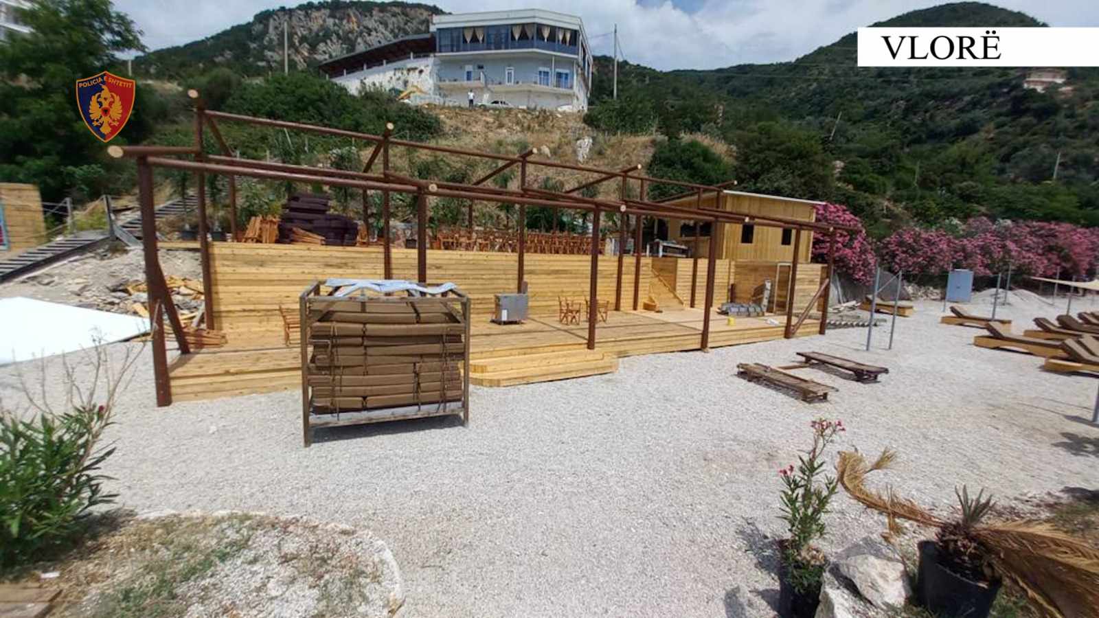 Gjatë kontrolleve u konstatua se shtetasi M. V. kishte ngritur 2 objekte prej druri, në funksion të ndërtimit pa lejen e organeve kompetente, të një lokali në plazhin e Jonufrit.