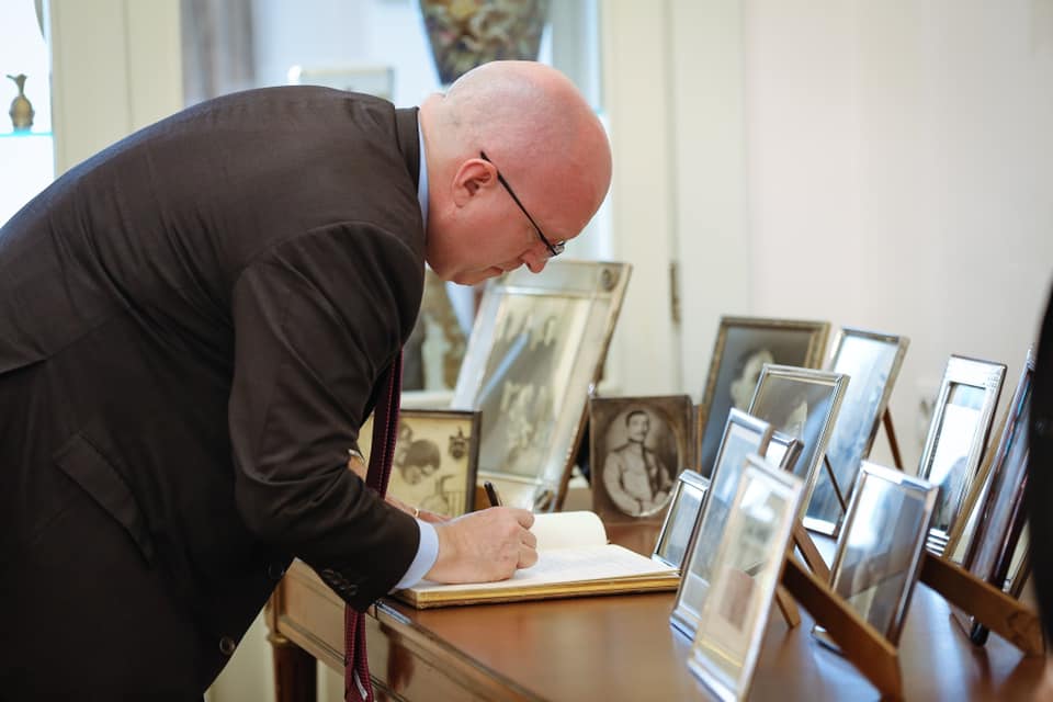 “Ditën e djeshme patëm kënaqësinë të prisnin në rezidencën e Familjes Mbretërore Ndihmës Sekretarin e Shtetit në detyrë për Çështjet Europiane dhe Euroaziatike, Ambasadorin Philip T. Reeker, sëbashku me Ambasadoren e Shteteve te Bashkuara të Amerikës, Yuri Kim.