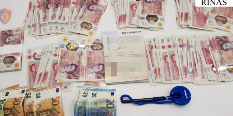 Kontrolli fizik ndaj një 48-vjeçari grek në Aeroportin e Rinasit çoi në zbulimin e 15 mijë paundëve dhe 570 eurove, të cilat ai tentoi t’i kalonte pa i deklaruar. Burime zyrtare të policisë thonë se 48-vjeçari vinte nga Londra drejt vendit tonë. Ai u procedua në gjendje të lirë, ndërsa paratë u sekuestruan.