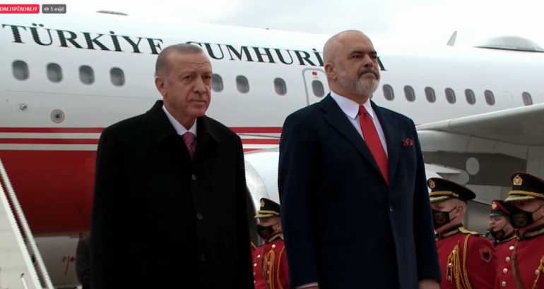Ka mbërritur në Rinas avioni i Presidentit turk, Erdogan. Mësohet se avioni është ulur rreth orës 10:30 në aeroportin ndërkombëtar “Nënë Tereza”, ndërsa kryeministri Edi Rama është duke pritur Presidentin turk. Sapo kreu i shtetit turk ka zbritur nga shkallët e avionit, është takuar përzemërsisht me kryeministrin Rama.
