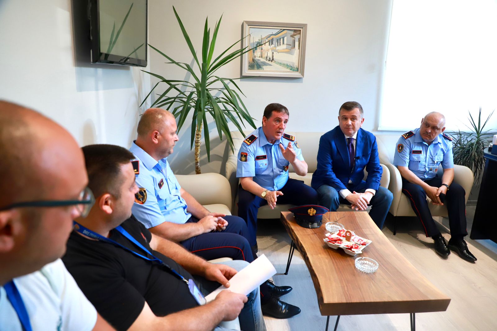 Ministri Balla gjatë takimit ka falenderuar forcat e Policisë së Shtetit të Drejtorisë Vendore Korçë për kryerjen e detyrës gjatë gjithë natës së mbrëmshme deri sot në mëngjes në Maliq edhe në kushtet e kërcënimit për jetën.