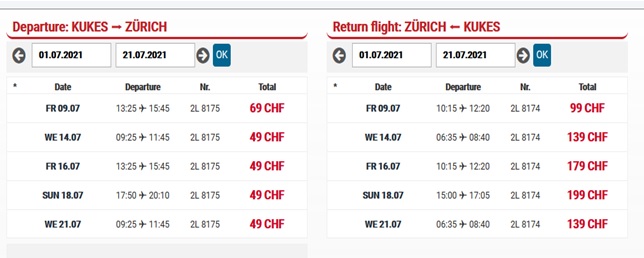 Në shtator, biletat janë më të lira vajta kushton 49 franga dhe kthimi 79.