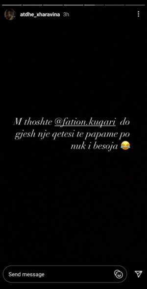 Ndërkohë, nga ana tjetër, Fationi e ka ripostuar këtë deklaratë në InstaStory-n e tij, krahas së cilës ka shkruar: