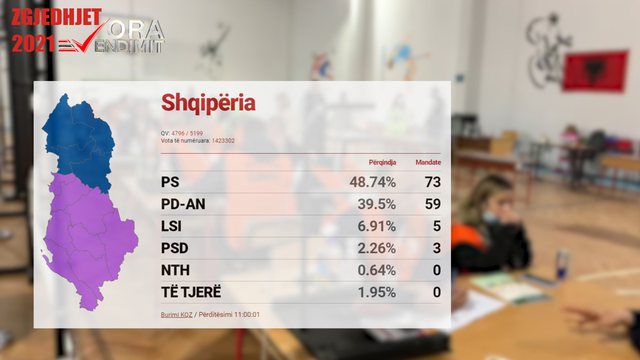 Procesi i numërimit të votave po shkon drejt fundit në rang vendi për zgjedhjet e 25 prillit. Sipas të dhënave të KQZ-së në orën 10:51 , janë numëruar 4796 kuti nga 5199 në total.