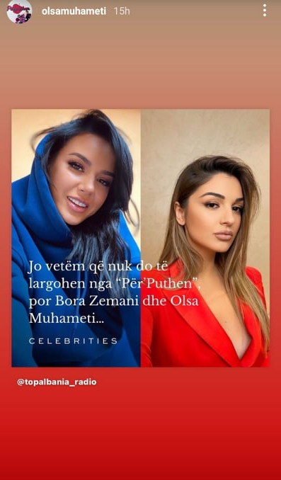 Ajo ka shpërndarë në Instastory një lajm të Top Albania Radio, ku shkruhet se burime pranë “Top Channel” konfirmojnë se “Për’puthen” do të vazhdojë, sigurisht me Olsën dhe Borën.
