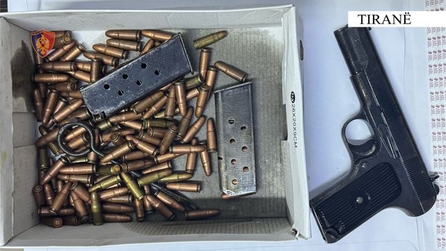 Sekuestrohen 1 armë zjarri pistoletë dhe municion luftarak, që u gjetën gjatë kontrollit në banesën e 40-vjeçarit.