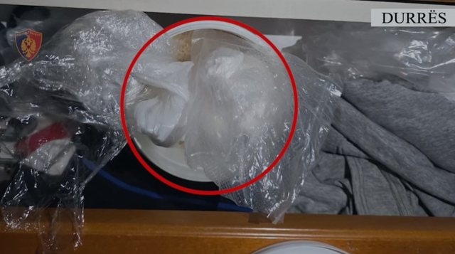 Në vijim të operacionit, gjatë kontrollit të banesës së tij, shërbimet e Policisë gjetën dhe sekuestruan edhe një sasi tjetër lënde narkotike të dyshuar kokainë, e futur në disa qese, si dhe një peshore elektronike, me peshë totale 250 gramë, që shërbente për peshimin e lëndës narkotike në doza.