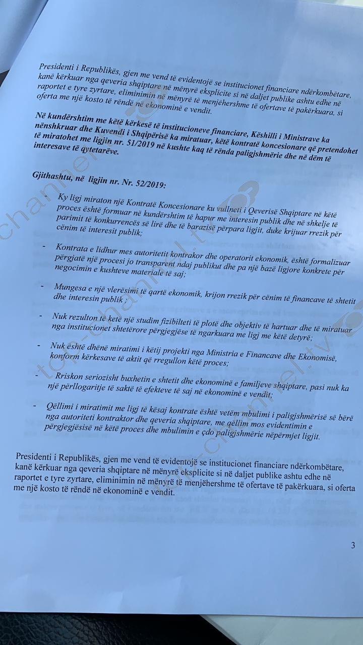 Më tej vazhdoi: “Në këtë kallëzim denoncohen me fakte duke u bazuar edhe me dekretet e kthyera te presidentit dhe raportin e KLSH-së. Denoncohet i gjithë zinxhiri-vendimmarrës, që nga specialisti më i thjeshtë deri te zyrtari më i lartë, që me këtë skeme korruptive i kanë ngarkuar në kurriz shqiptarëve një borxh publik qindra miliona euro” tha Halit Valteri pasi depozitoi kallzimin në prokurori.Topch