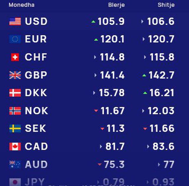 Më poshtë do të gjeni kursin e këmbimit valuator të përditësuar:
