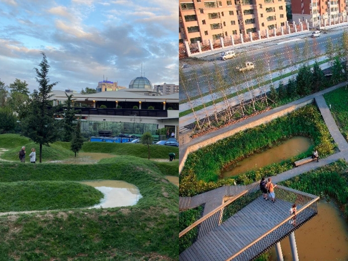 Parku Rinia dhe nje park tjeter ne bote, te dy te mbushur me uje sipas projektit te parashikuar