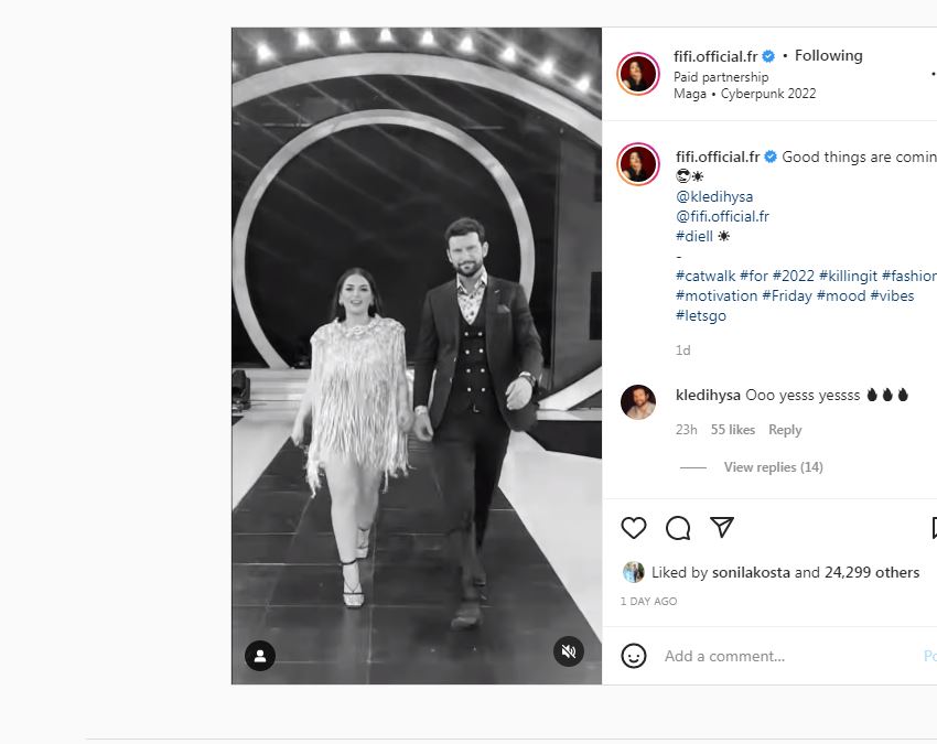 Këngëtarja shumë e dashur nga publiku, Fifi është shumë aktive në rrjete sociale, ku ndan herë pas here momente të ndryshme nga përditshëmëria dhe koncertet. Së fundmi, ajo ka publikuar një video ku shfaqet së bashku me ish-banorin e “Big Brother VIP”, Kledi Hysën. Dyshja janë parë shumë të afërt me njëri-tjetrin, nuk dihet nëse kanë në plan ndonjë projekt, por ka qenë Fifi, ajo që ka shtuar dyshimet.