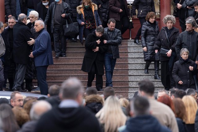 Trupi i saj mbërriti herët pasdite në Kishën e Shenjtë të Agia Anna-s në një arkivol të bardhë. Situatë e rënduar në “lamtumirën” e fundit, me nënën e të resë që qante duke bërtitur se nuk dëshiron të shohë çfarë ka brenda arkivolit.