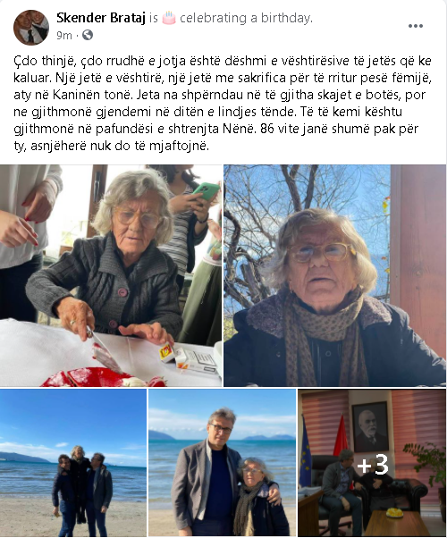 Drejtori i Urgjencës Kombëtare Skënder Brataj ka uruar të ëmën në 86-vjetorin e lindjes. Teksa ka publikuar disa foto të saj Brataj ka bërë edhe një dedikim prekës.