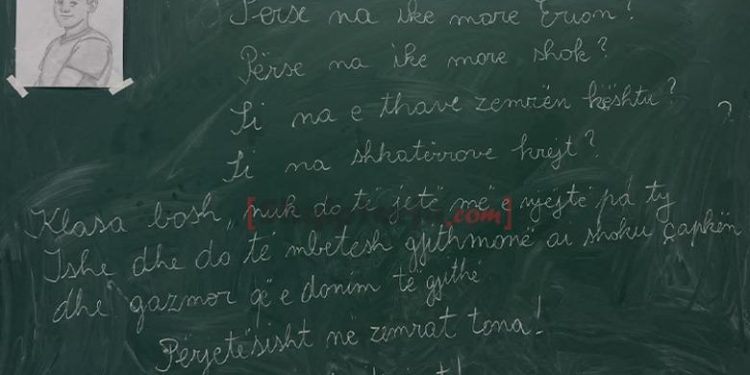 Shokët dhe shoqet e klasës së 15- vjeçarit Erjon Boba, i cili humbi jetën pasi u plagos me thikë në zemër nga një 14-vjeçar në qytetin e Durrësit, i kanë shkruar një mesazh në dërrasën e klasës duke treguar mungesën që ndjejnë për të.