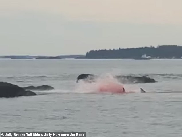 Ky është momenti kur një peshkaqen i bardhë sulmon një fokë. Teksa vakti i drekës u sigurua prej tij, deti mori ngjyrë të kuqe.
