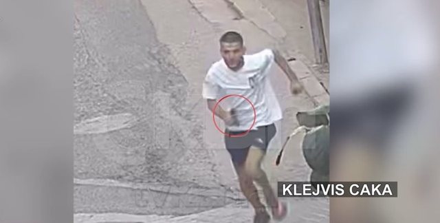 Ky është momenti kur Klejvis Caka, 26 vjeç largohet me vrap pasi ka plagosur me armë zjarri 28-vjeçarin, Jukled Abazi në zonën e Freksut në kryeqytet, mbrëmjen e së shtunës.