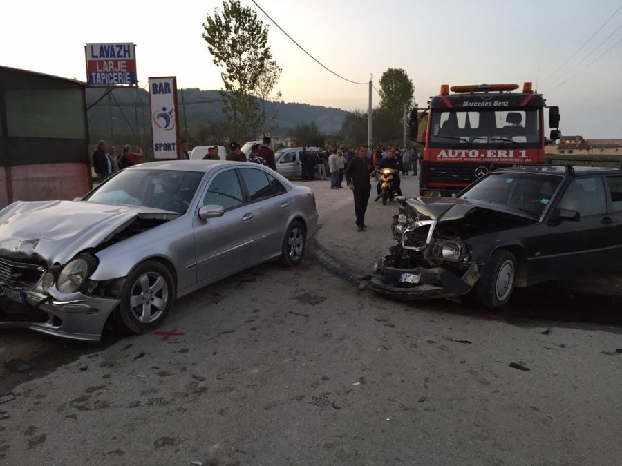 Dy makina tip ‘Benz’ janë përplasur me njëra-tjetrin dhe sipas dëshmitarëve okulare janë plagosur tre persona të cilët janë dërguar në spitalin e Traumës në Tiranë në gjendje të rëndë.